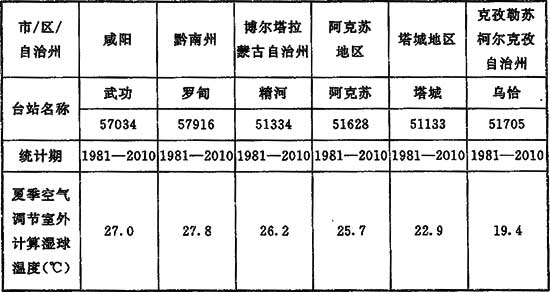 表15 部分臺(tái)站夏季空調(diào)室外計(jì)算濕球溫度參考值