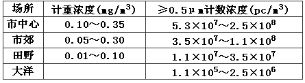 根據國內外測試資料,農村空氣污染程度較低,其含塵濃度一般只相當于城市含塵濃度的幾分之一,甚至低一個數量級。而城市工業區的含塵濃度又遠高于城市市區及市郊。不同地區含塵濃度也不同,如表1~表3所示。不同季節的含塵濃度也不相同,表4所列是天津市某地段不同季節室外含塵濃度的實測值。