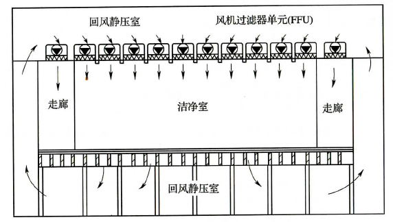 圖2 風(fēng)機過濾器單元送風(fēng)方式(FFU)示意圖